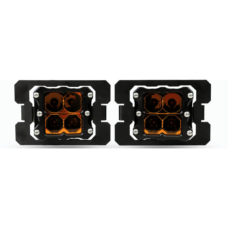 The Heretic Ford Super-Duty Amber LED Fog Light Kit (2015+) is the best LED fog light kit on the market for your Ford truck. Featuring our staple Quattro Light Pod, the Ford Super-Duty fog light kit increases your visibility two-fold from OEM fog light kits. We’ve custom built the fog light kit housing in a sleek, simple stainless steel powder coated bracket. The install is easy with the plug and play wire harness. This specific Ford amber LED Fog Light Kit is compatible with Ford Super-Duty Models (‘15+).
