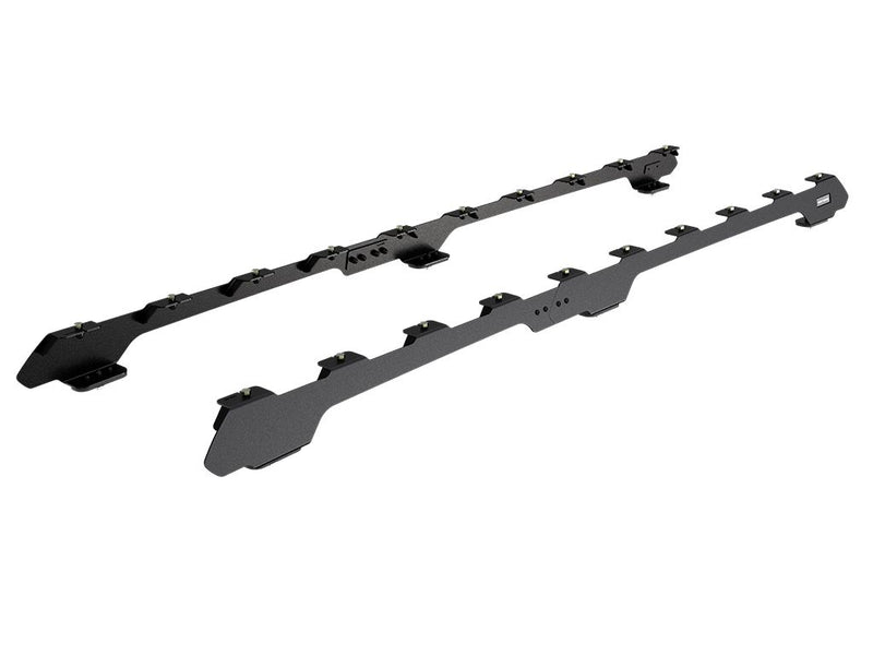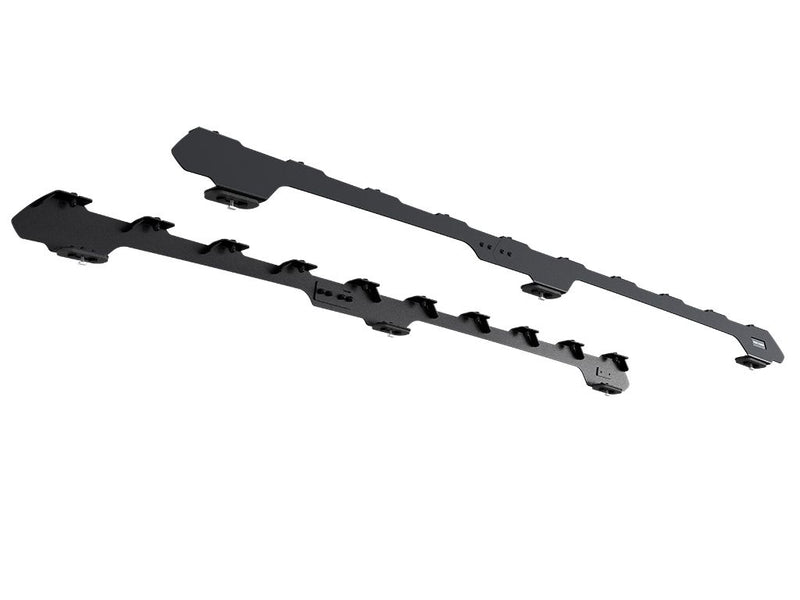 This pair of rails, with integrated mounting feet, are used to attach the Front Runner Slimline II Roof Rack to the Mercedes Benz G-Class using the vehicle's existing mounting points.